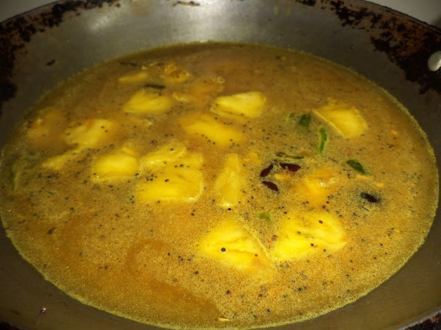 It is traditionally served with chutneys/Sambar or Ghothsu.